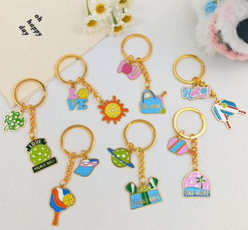 Ingrosso Logo personalizzato Mini metallo smalto Glitter Pickleball palle Paddle portachiavi incisione